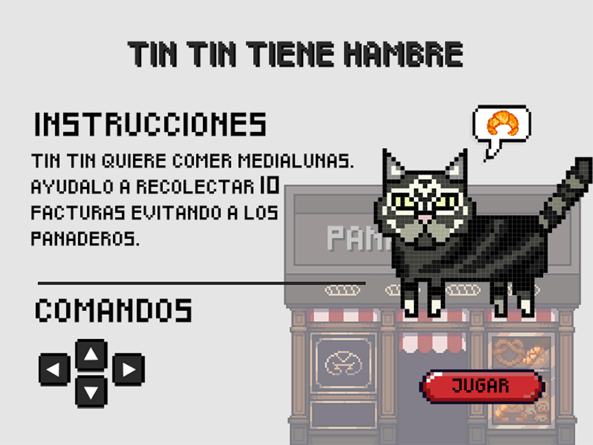 TRABAJOS PRÁCTICOS 2C 2021 Los videojuegos fueron programados para ser jugados en computadora, con teclado y/o mouse. Grupo 1: AL TOQUE Paula Sayaka Kita Yomo, Camila Sayago, Teresita Inés Sanchez, Guadalupe Sofía López, Adelfo Cristóbal Grupo 2: Gelatto Iara Schniper,Florencia Aguilar Camiña, Nazarena Herrera, Marien Solis,Yeimy Mendoza Grupo 3: La Navidad de Murphy Martina D'Amelia,Manuel Müller,Sofía Príncipe,Mercedes Crespo,Renzo Ciancaglini Grupo 4: La princesa despechada Vale guimarey y Dario Martin Grupo 4bis Nicolás Conti, Micaela Yoo, Lucila Cappiello Grupo 5: J de Juego Agustina Viera, Jessica De Antonio, Florencia Amaya, Carolina Segarra, Tomas Martinez Almudevar Grupo 6 Hassan, Lavigne, Videla Leiva, Ferrazzi Grupo 7: Internet exploded Lombardo, Arzani, Debarnot, Maiale, Noriega Grupo 8: Gatito Rompetutti Pomerantz, Soria, Dardon, Salomon Grupo 9: Pixelity Brollo, Azcurra, Castillo, Lietti Purchetto, Medrano Grupo 10: La luz mala y los gualichos Furci, Fontenla, Scorofitz, Franco, Silva Fernandez Grupo 11: ¡TINTIN TIENE HAMBRE! Kochen, Anzoategui, Carraud, Pereira Barrantes, Tanquias Grupo 12: Cancel Hero Robles, Kairiyama, Kirlis, Favier, Di Angelis